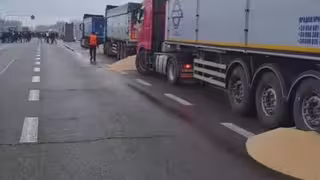 Так, за даними поліції, фермери, які протестували неподалік, зупинили три українські вантажівки та висипали з них зерно.