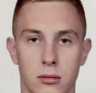 Був одягнений у білу спортивну куртку без капюшону, чорні спортивні штани, чорні кросівки та чорну кепку з малюнками у вигляді окулярів.