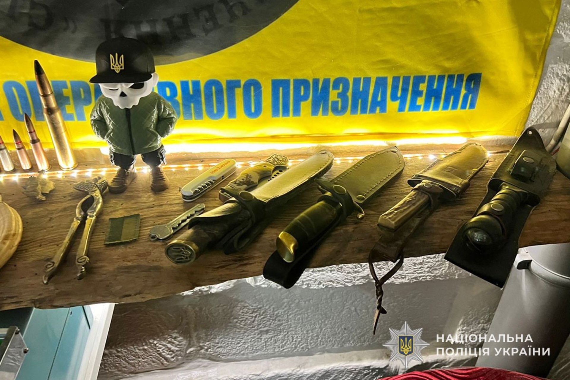 Поліцейські виявили заборонені предмети, зокрема, патрони, порох, ножі а також суху подрібнену речовину, схожу на наркотичну
