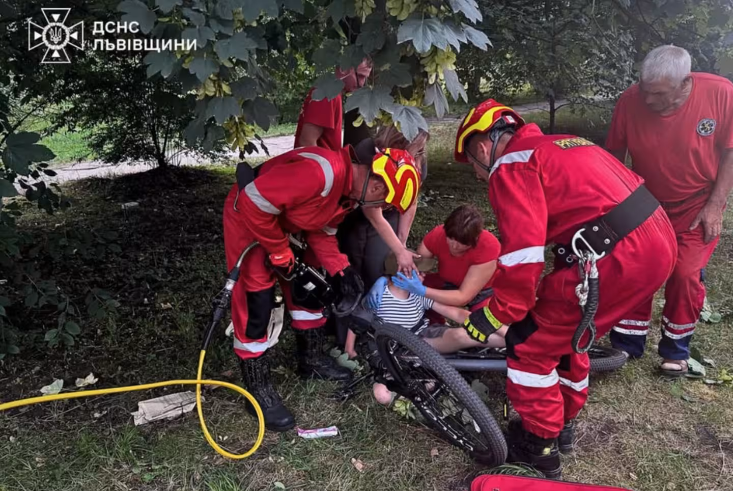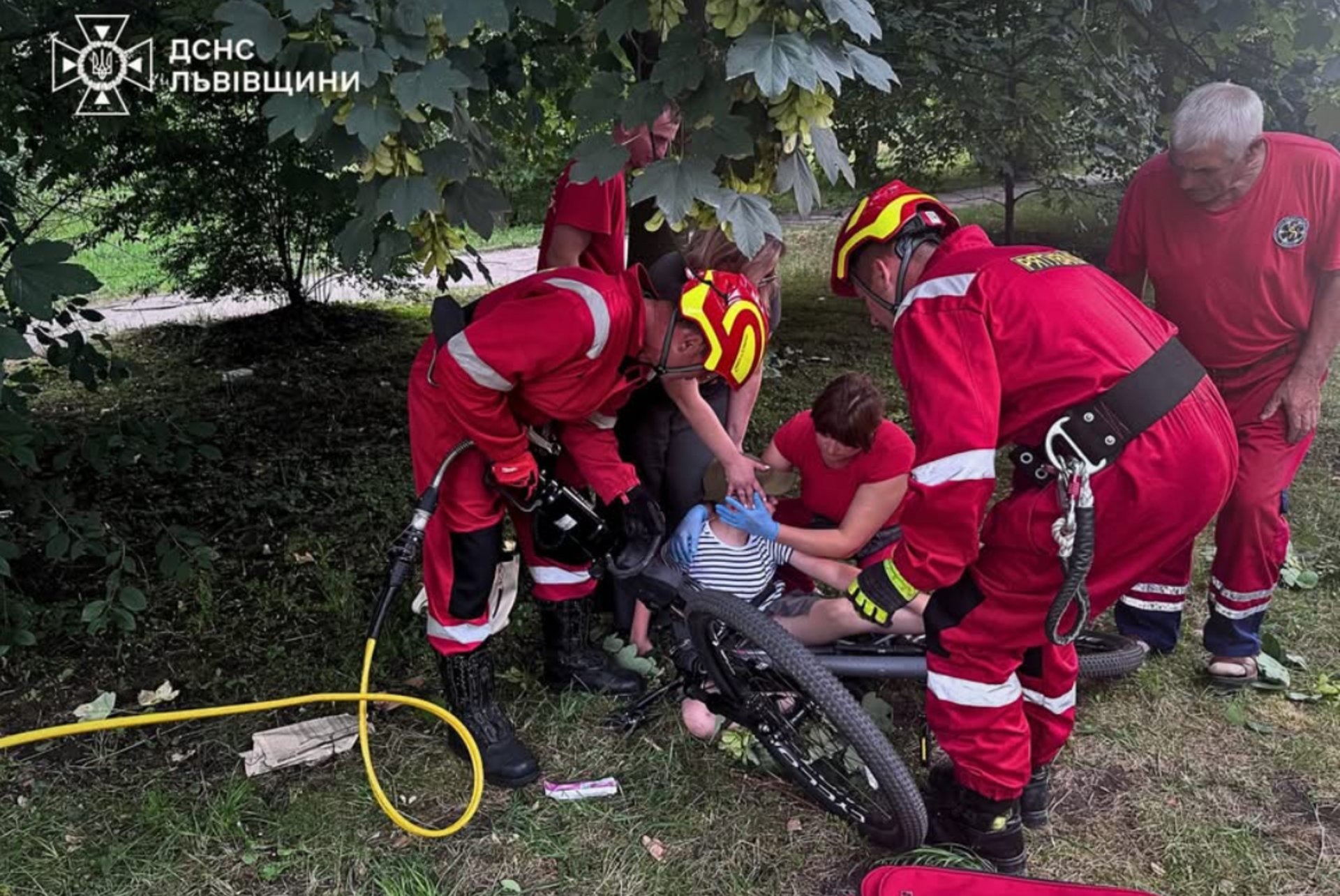 За допомогою спеціального інструменту вони обережно відрізали частину керма велосипеда, що дозволило звільнити ногу хлопчика.