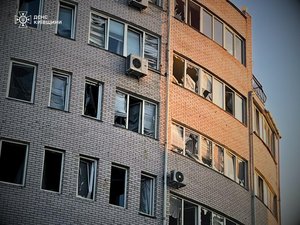Вибуховою хвилею пошкоджені також квартири 25-поверхового житлового будинку навпроти.