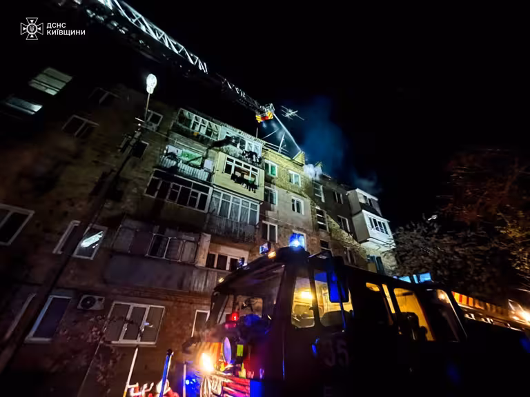 У ніч проти 24 квітня росія завдала комбінованого масованого удару по дев’яти регіонах України. Найбільше постраждав Київ. Загалом рятувальники ДСНС ліквідували близько 40 осередків займання.