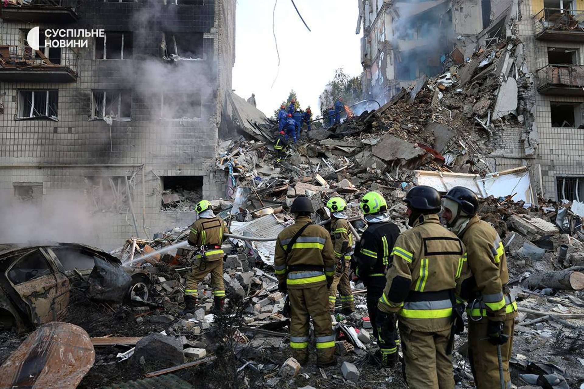 “Зараз у Києві намагаються дістати людей з-під завалів звичайного житлового будинку. Скільки їх, зараз незрозуміло. Росіяни зруйнували цілий під’їзд. Загалом пошкоджені будинки у восьми районах Києва”, - наголосив глава держави.