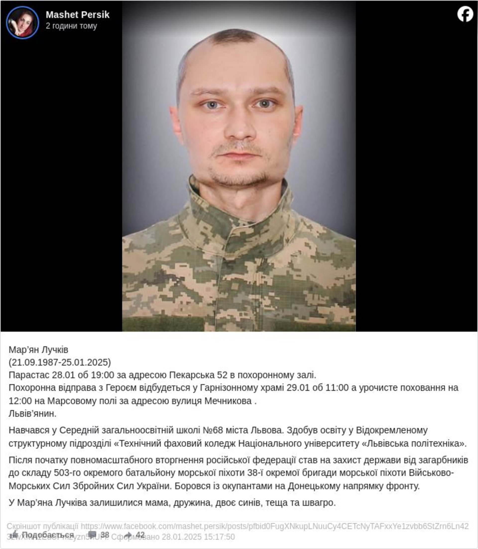 Мар’ян Лучків (21.09.1987-25.01.2025) Львів’янин.