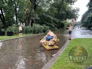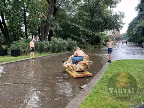 Танець блискавки, затоплені черевики, розваги у воді: підбірка курйозів сьогоднішньої зливи (відео, фото)