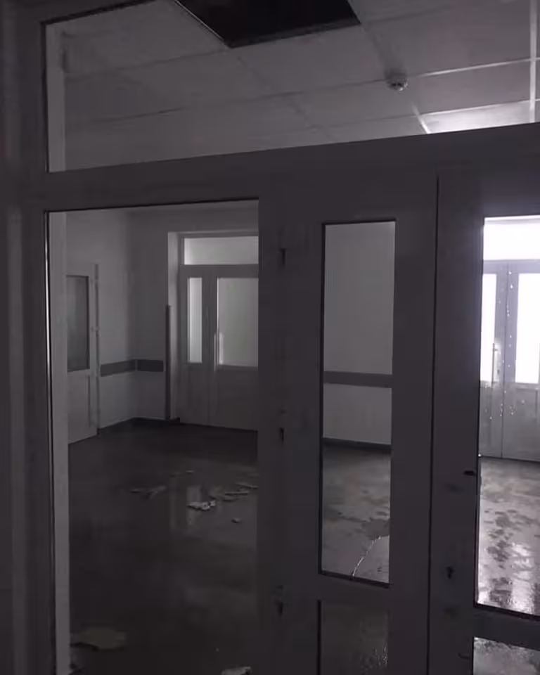«Свіженький ремонт приймального відділення лікарні не витримав й першого дощу!», — зазначається у коментарі до світлин.