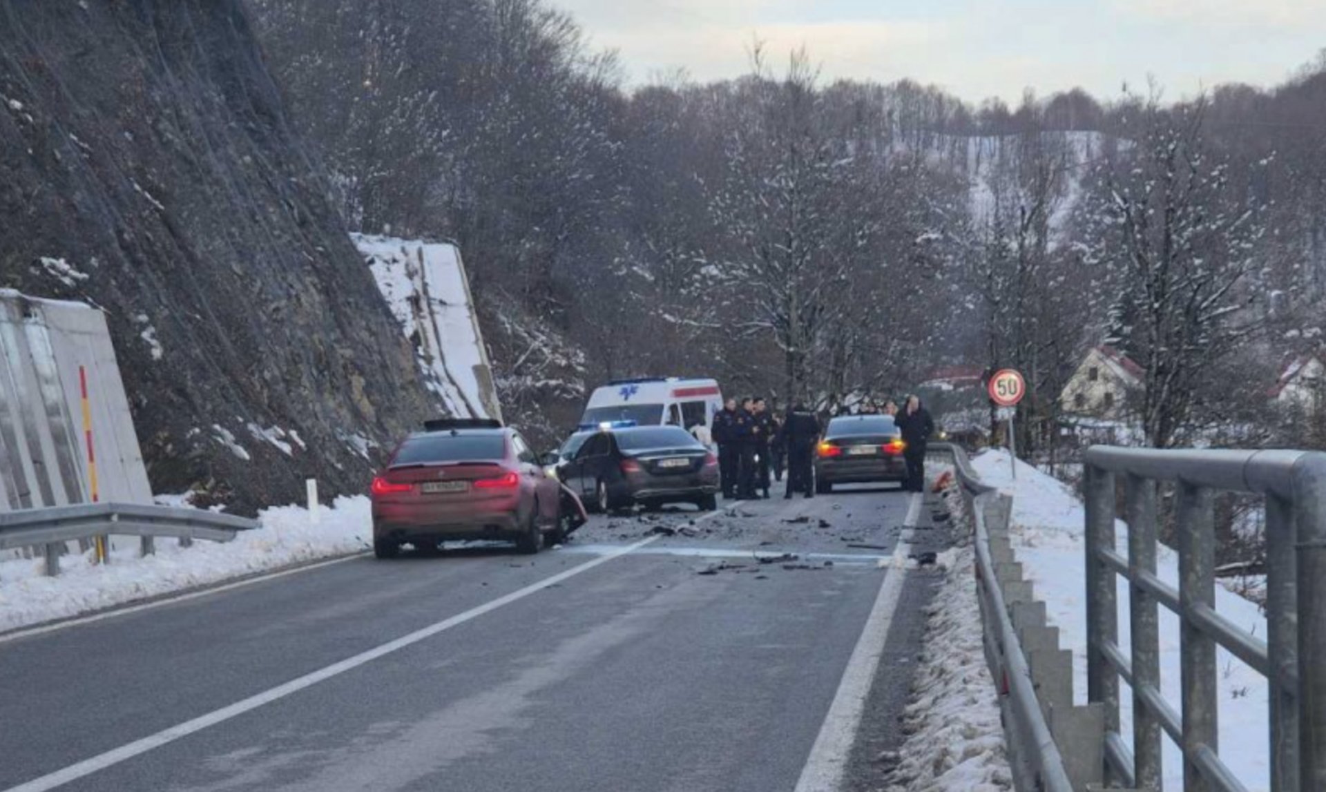 Водій, рухаючись з боку Подгориці, з невідомих причин перетнув суцільну лінію розмітки, виїхав на зустрічну смугу та влетів "лоб у лоб" у службовий Mercedes із супроводу охорони.