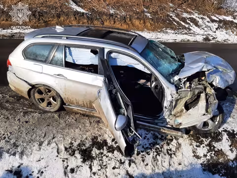 Водій автомобіля «BMW» виїхав на смугу зустрічного руху та допустив зіткнення з автомобілем Land Rover, який рухався в зустрічному напрямку.