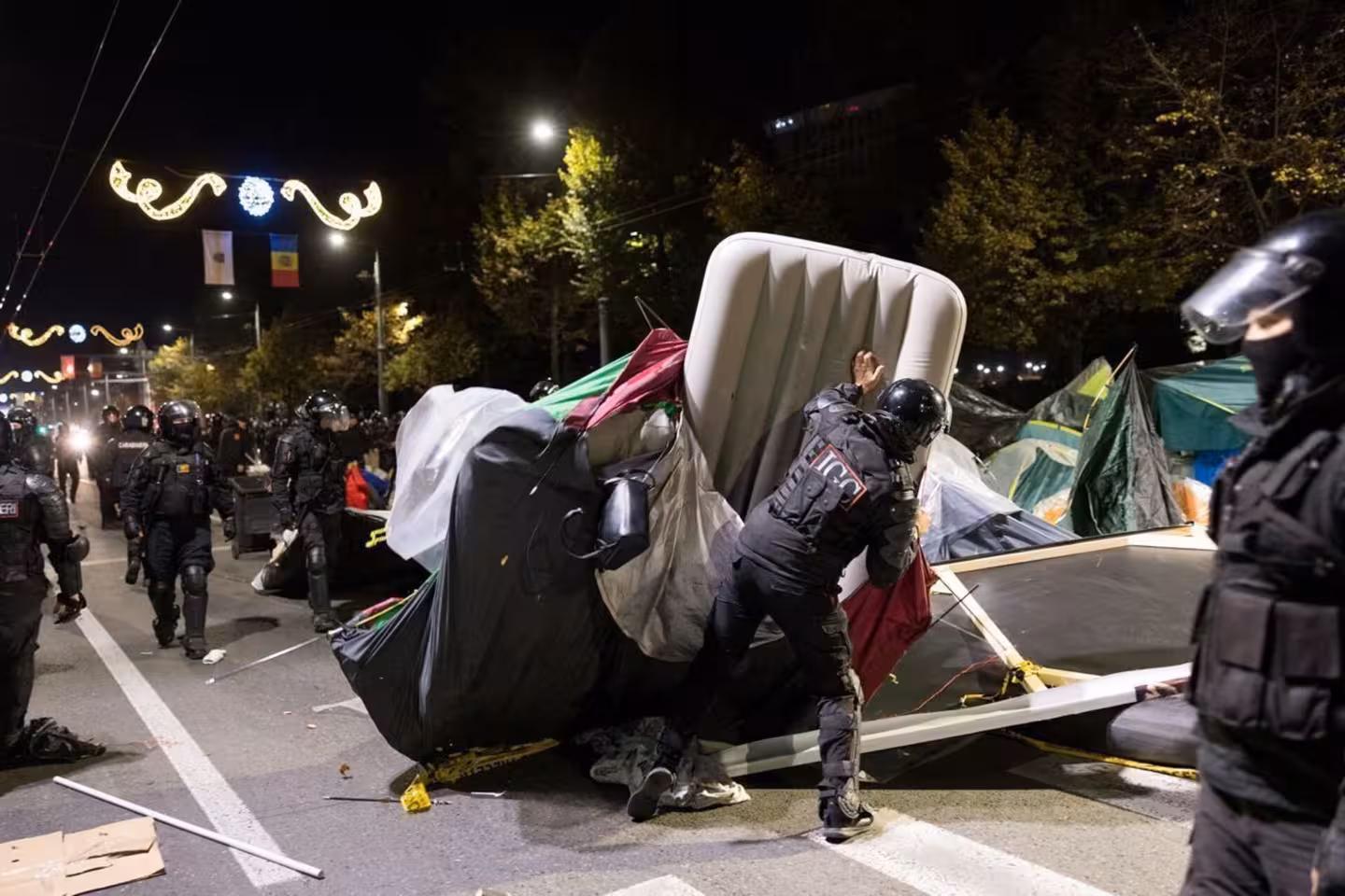 Крім наметів, які були розкладені на проїжджій частині бульвару Штефана Маре, поліцейські знесли табір протестувальників поблизу парламенту та адміністрації президента.