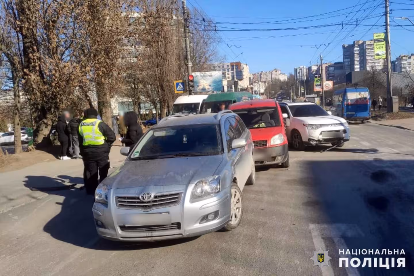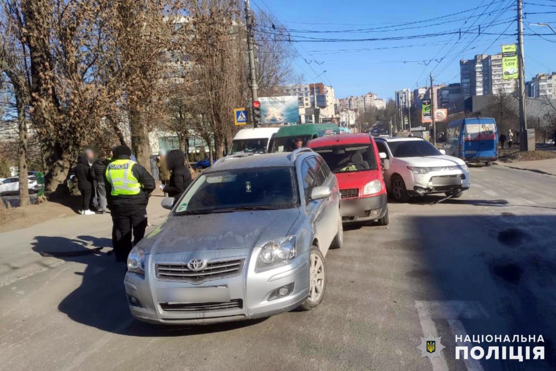 Попередньо встановлено, що 37-річний водій маршрутного таксі «Mercedes-Benz», допустив зіткнення із автобілем «Mitsubishi», який рухався в попутному напрямку. Далі відбулося почергове зіткнення із автомобілями «Fiat» та «Toyota».