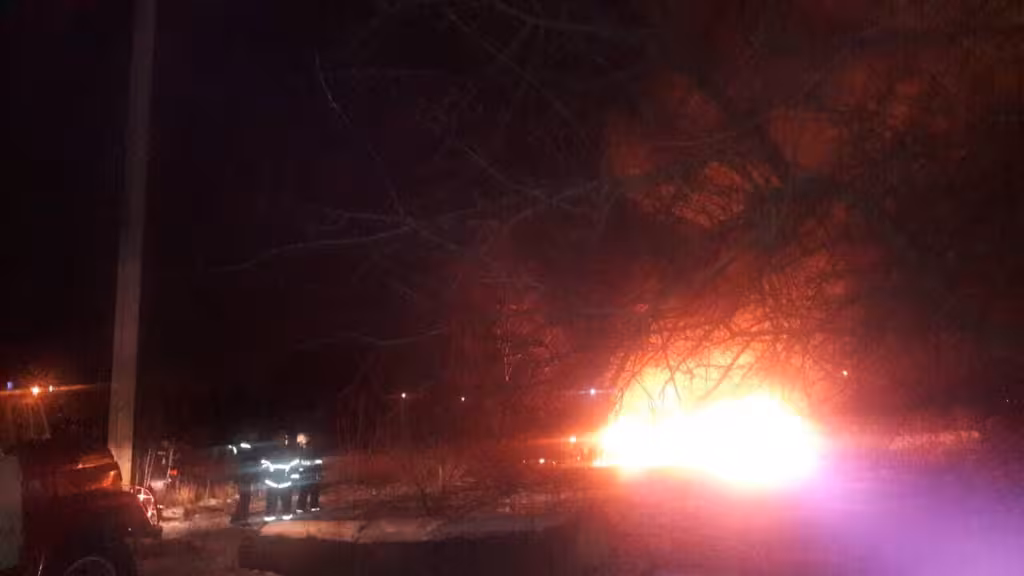 «За попередньою інформацією він зіткнувся з лінією електропередач. Тому на місці працює поліція, яка очепила територію. ДСНС його гасять», - розповів речник.