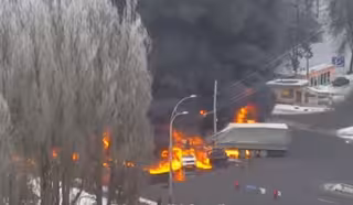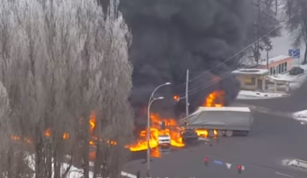 У Києві масшатбна ДТП: вантажівка в'їхала у маршрутку та загорілася (фото, відео)