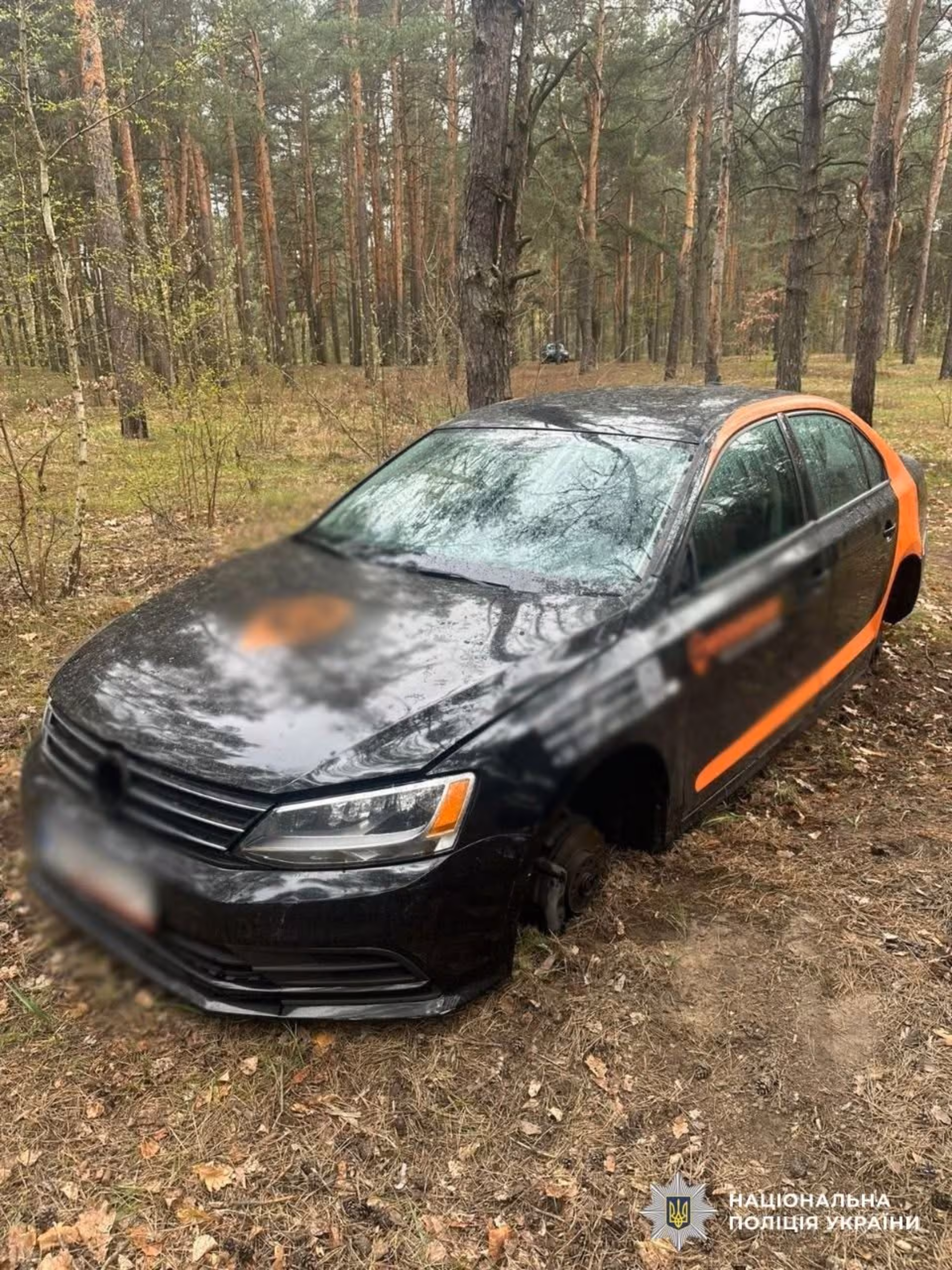 «Зняли шини з дисками, дзеркала, ліхтарі, автомагнітолу та килимки. Викрадені речі зловмисники переклали до власної автівки, а понівечений Volkswagen залишили в лісосмузі», – йдеться в повідомленні.