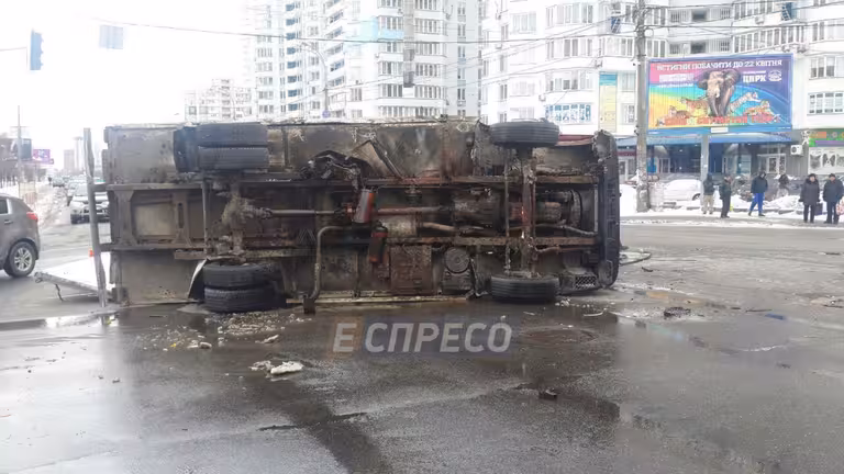 У Києві вантажівка протаранила трамвай з пасажирами (ФОТО)