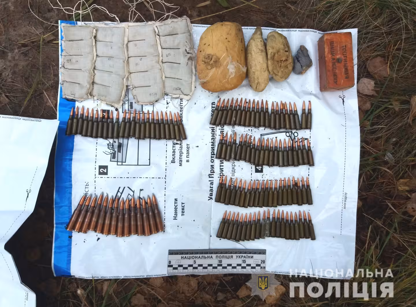 У лісі на Рівненщині, за 2 км від села, розкопали чотири пакети з понад тисячею боєприпасів (фото)