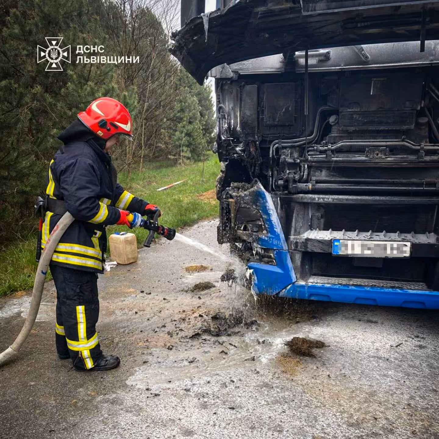 15 квітня о 17:15 надійшло повідомлення, що на автодорозі поблизу с. Черчик Яворівського району виникло займання у вантажному автомобілі «MAN».