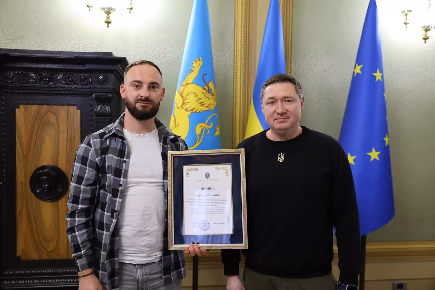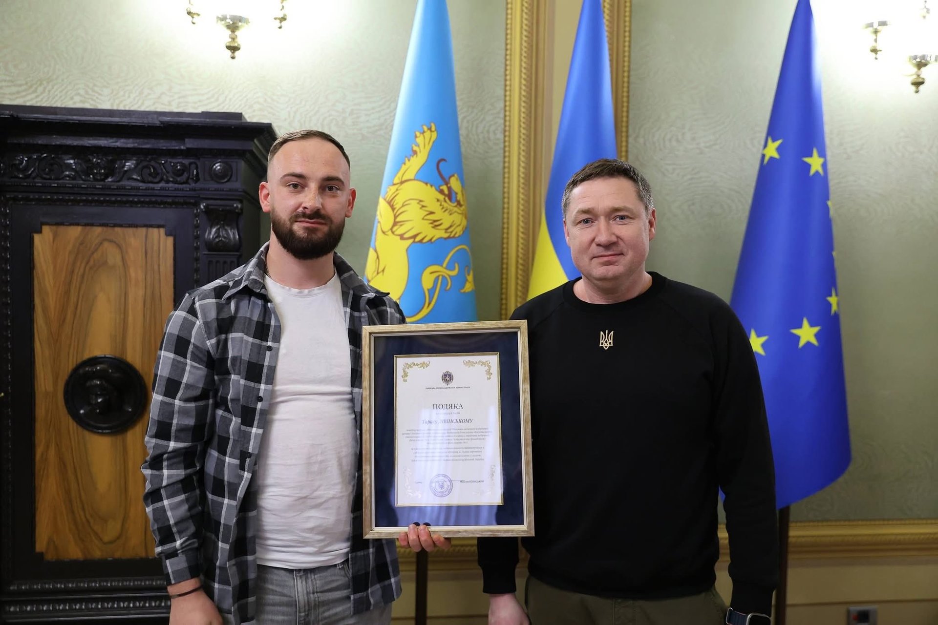 У Львівській ОВА вручили подяку Тарасу Лівінському, який першим рятував потерпілих, після атаки шахедами