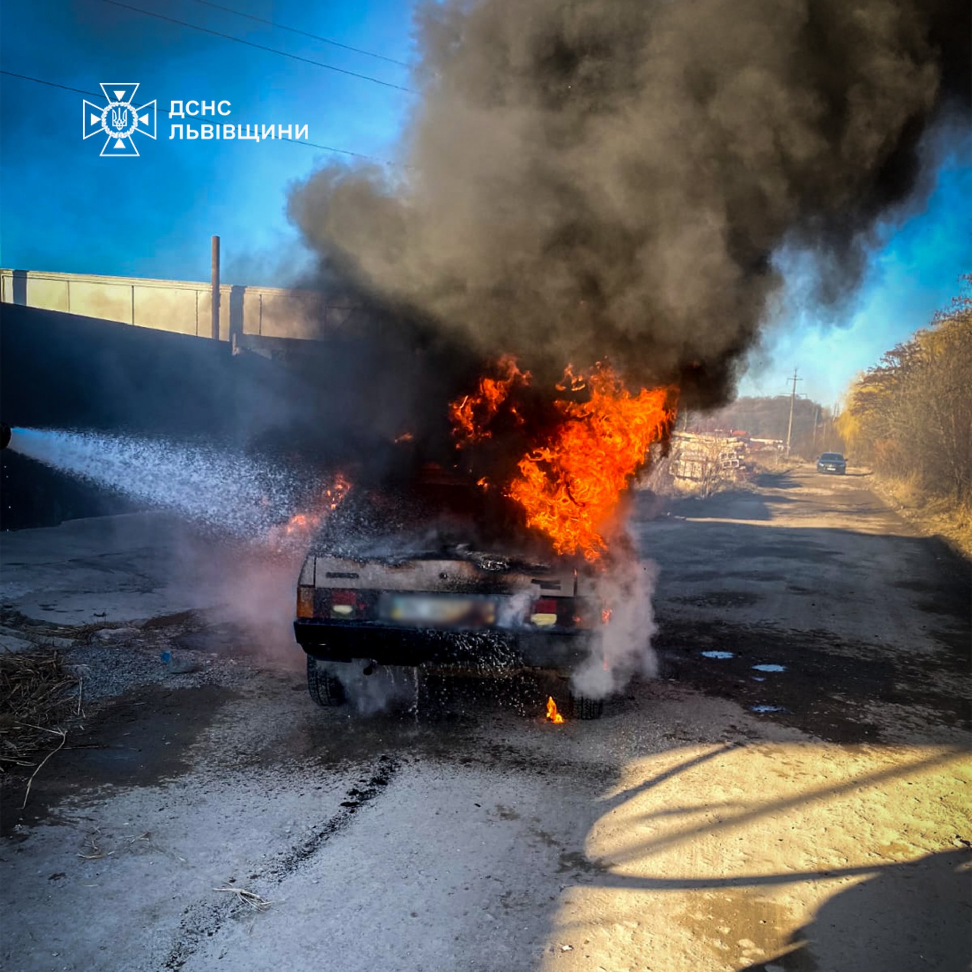 На момент прибуття вогнеборців на місце виклику автомобіль був повністю охоплений вогнем.