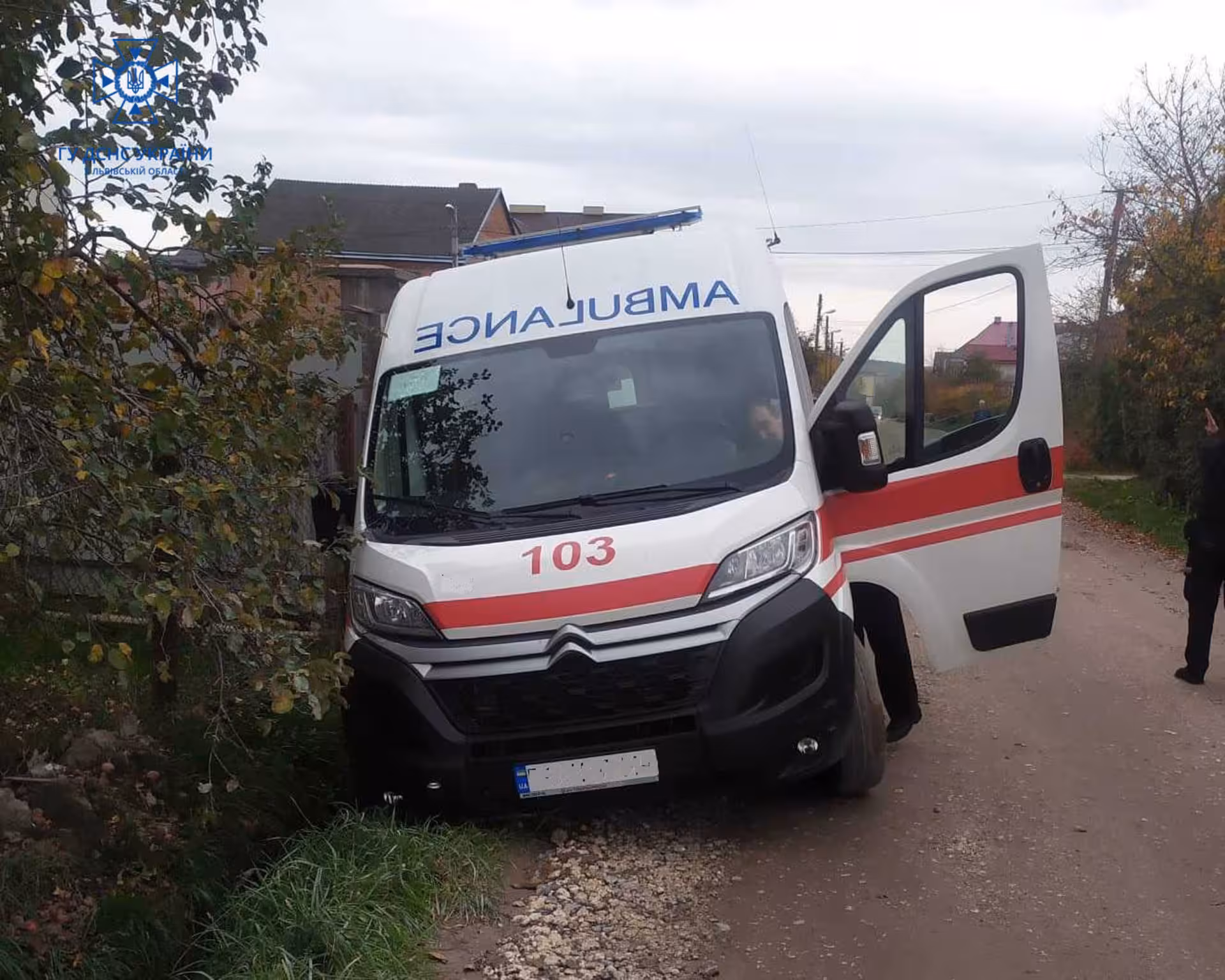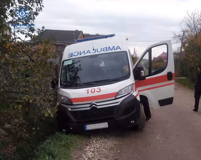 24 жовтня, о 17:02 год., надійшло повідомлення про те, що в м. Винники, на вул. Калнишевського, 1, Львівського району, з’їхав з дороги та застряг автомобіль швидкої допомоги «Citroen Jumper», що прибув на виклик.