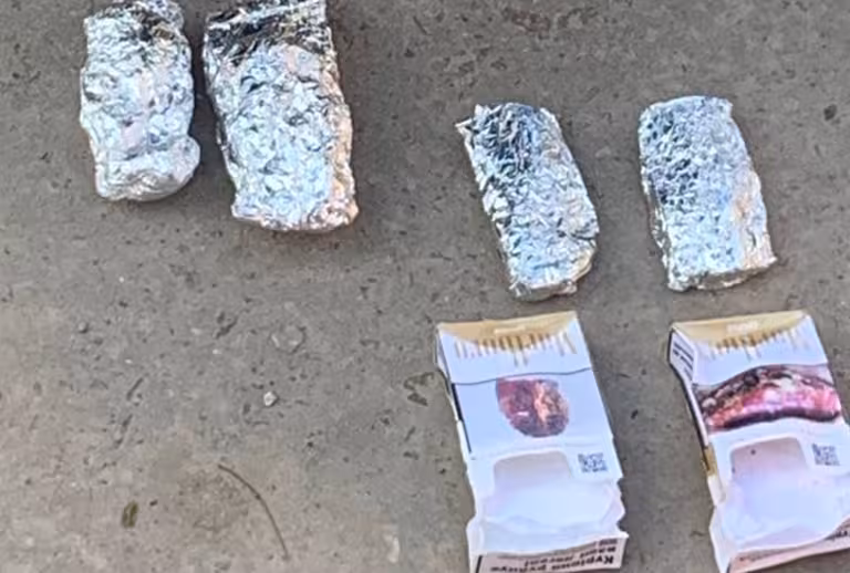 У нього виявили два ножі та вилучили з місця події чотири згортки з порошкоподібними речовинами білого та біло-рожевого кольорів.