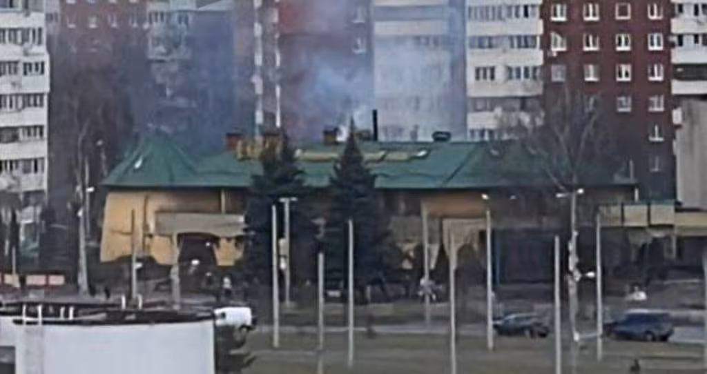 Як уточнили Варта1, позаду готелю «Екран» горіли 2 туї. На місце прибули дві пожежних автівки.