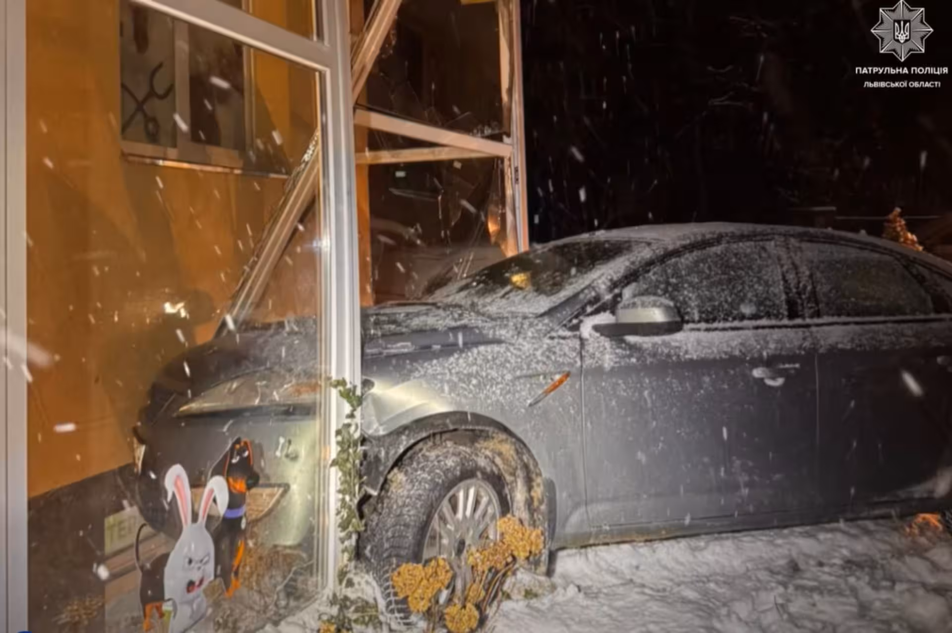У Львові 7 січня водій на автівці Ford Mondeo не впорався з керуванням та вʼїхав у будинок, внаслідок чого пошкодив вітрину ветклініки, повідомляє Патрульна поліція Львівської області.