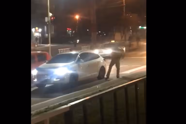 Екіпаж побачив на капоті проїжджаючого автомобіля чоловіка, чоловік стрибнув на дах транспортного засобу.