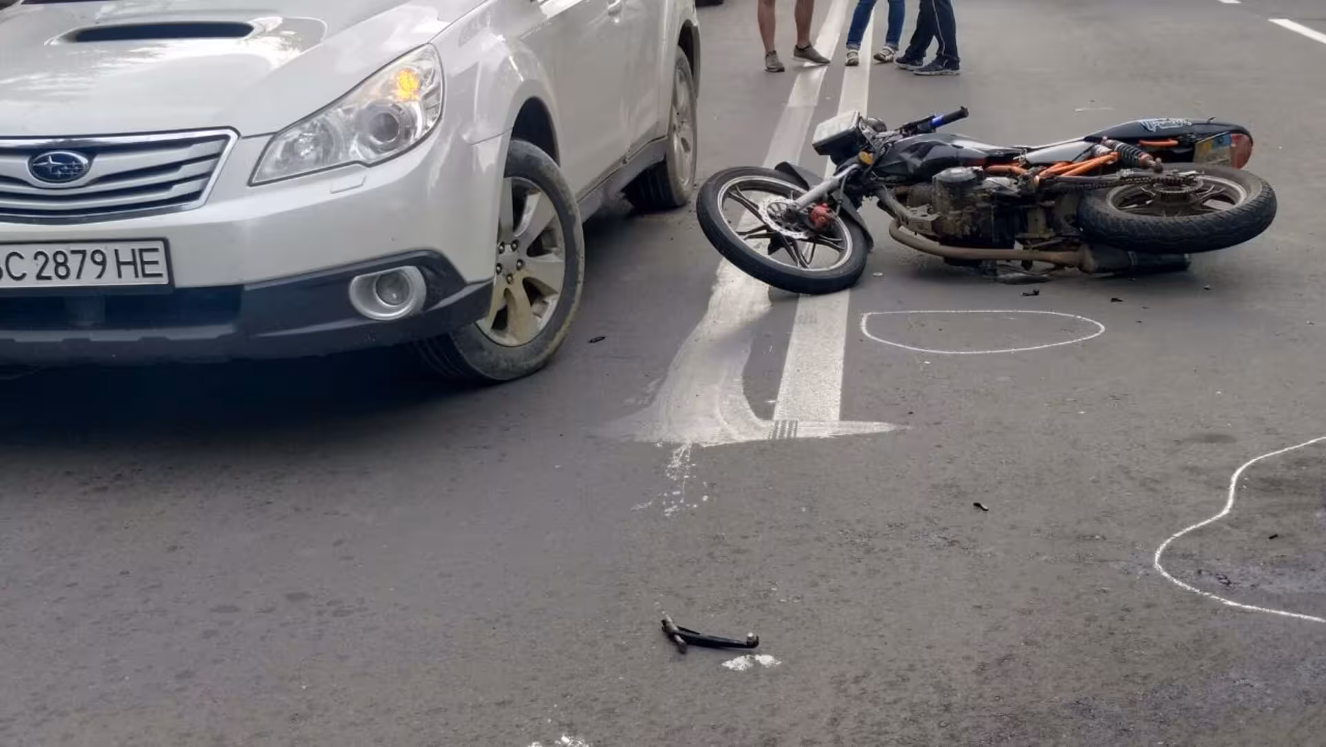 «Один з учасників аварії, автомобіль марки »Volkswagen Tiguan« рухаючись вулицею Стрийською виконував маневр. Мотоцикліст, який їхав за ним, уникаючи зіткнення виїхав на смугу зустрічного руху і зіштовхнувся з автомобілем »SUBARU Outback«. Автомобілі значних ушкоджень не отримали, більше постраждав мотоцикл», — повідомив кореспондент.