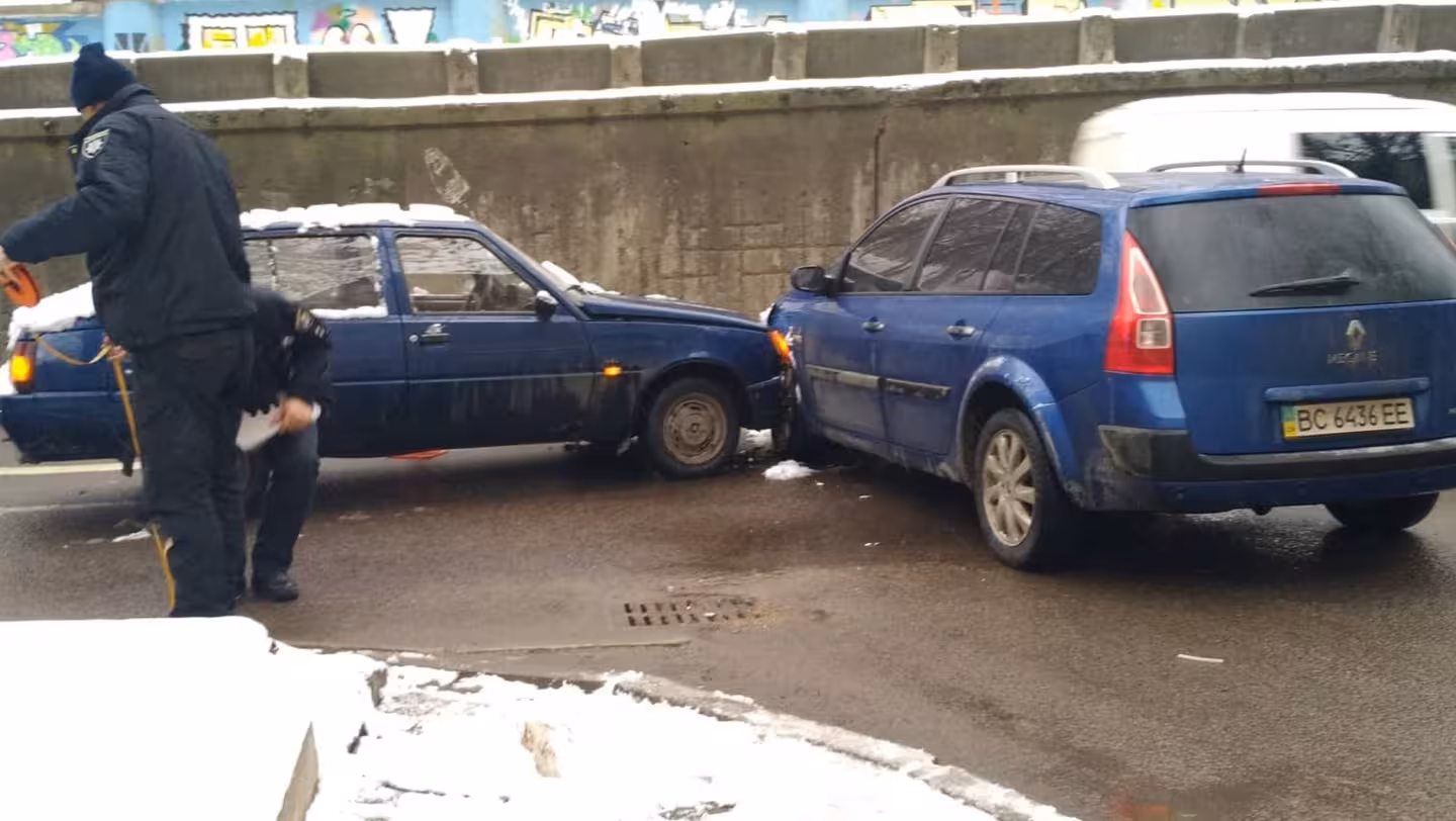 Сьогодні, 14 грудня, о 15:00 год., на львівській вул. Сахарова, 44, сталося незначне ДТП, з участю двох автомобілів: «Рено» та «Славута». Одразу після інциденту на цій ділянці траси, у бік вул. Княгині Ольги від центру, був серйозно ускладнений рух. Транспортний корок застав журналіст ГО «Варта 1» Володимира Садового, який побував на місці пригоди. «Автомобілі їхали реверсною смугою. На місці аварії працювала поліція», — повідомив він.