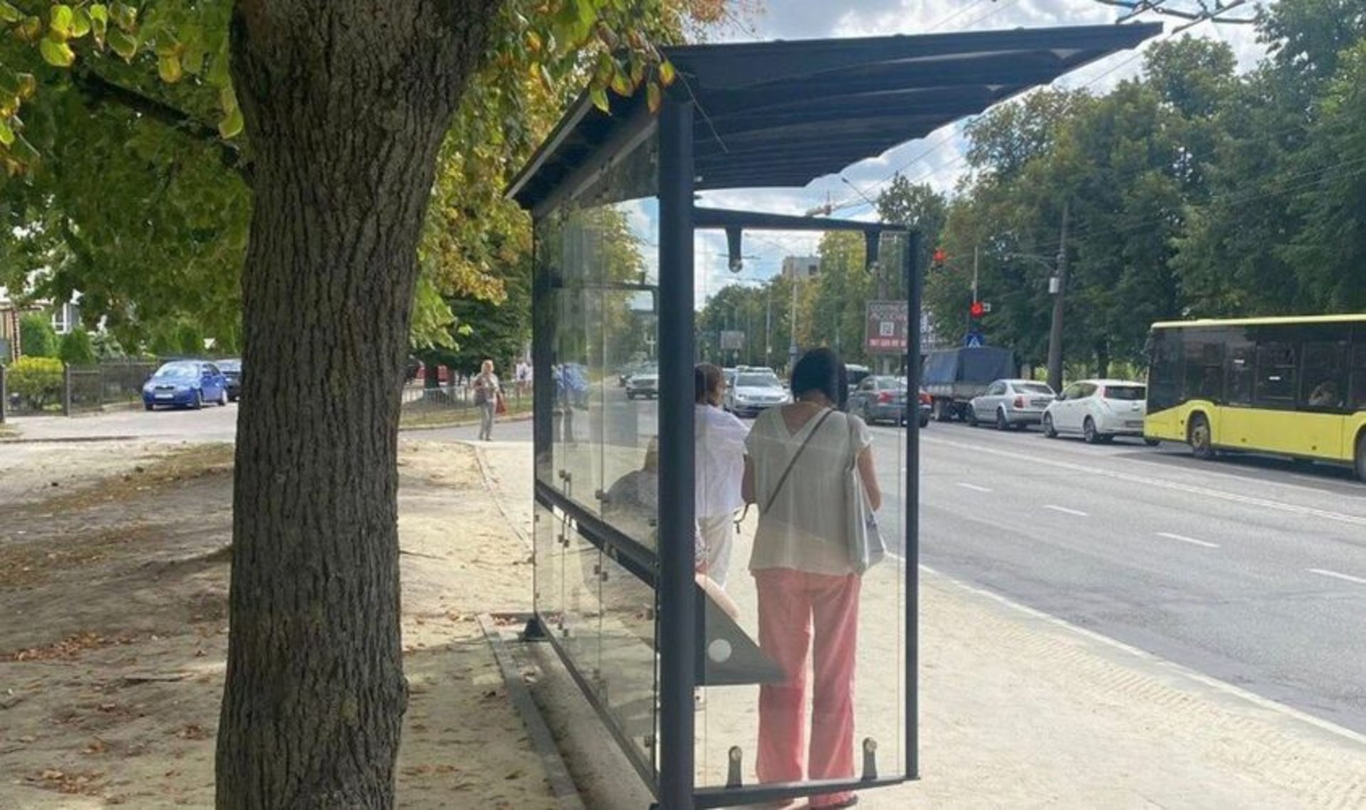 Ці скляні зупинки це суцільний жах, вони не рятують від дощу бо занадто високо дах , а влітку від сонця бо мають скляний дах, хто це проектує, і чому з такою ненависть до людей які змушені чекати громадський транспорт не зрозуміло.