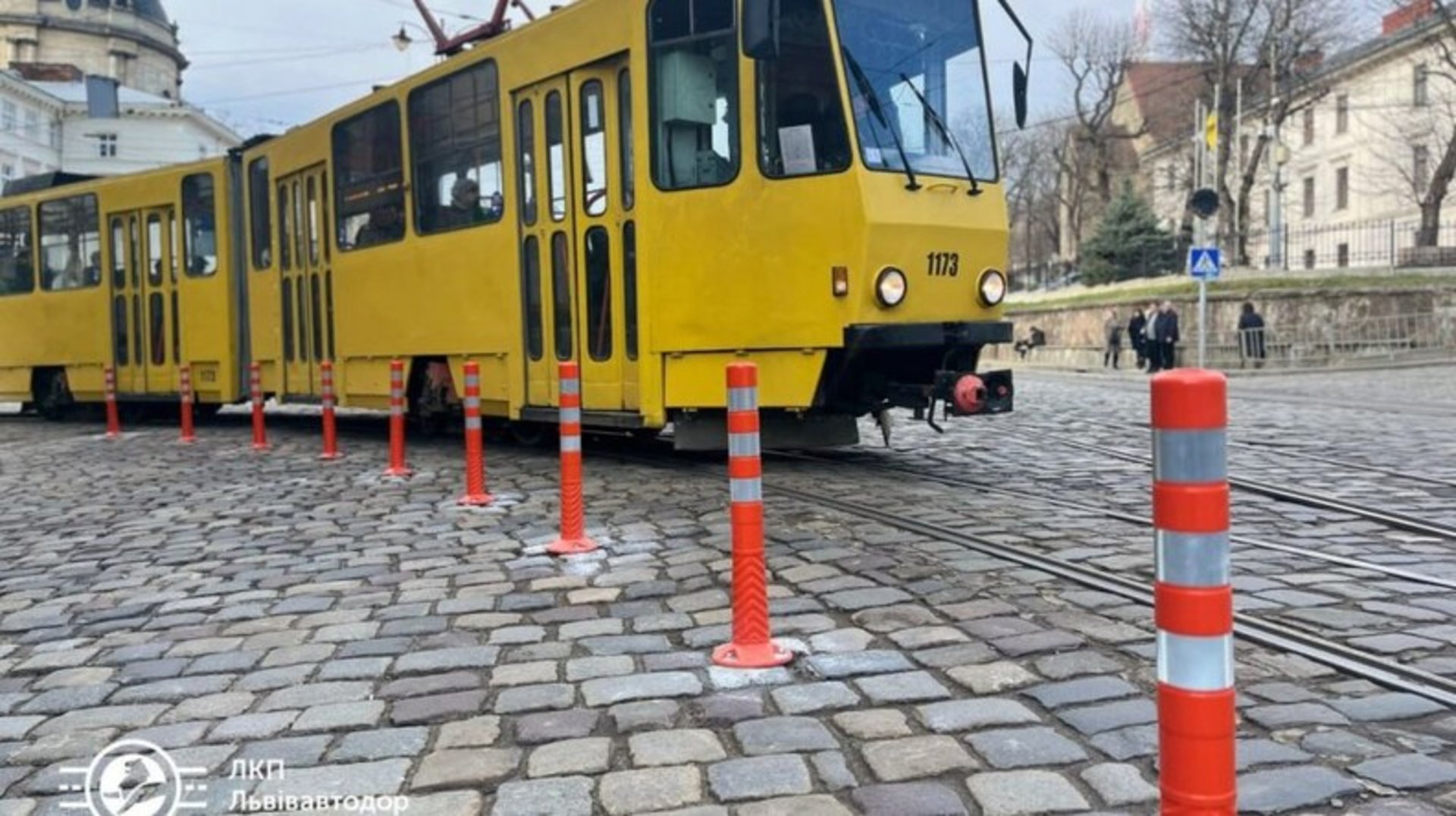 На час ремонту усі автомобілі скерують по смузі громадського транспорту. У Галицькій районній адміністрації пояснили, що старі делініатори були пошкоджені, а нові — гумові та меншої форми, що дозволить проїзд усіх типів трамваїв, зокрема тих, які місто отримало від європейських партнерів.
