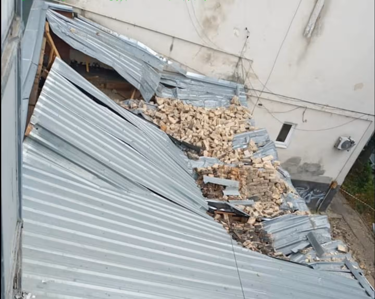 Стіна впала на тротуар, пробила дах приміщення їдальні-кафе «Концерну Електрон» та пошкодила обладнання, розповів подробиці інциденту Володимир Лесик, депутат Львівської міської ради.