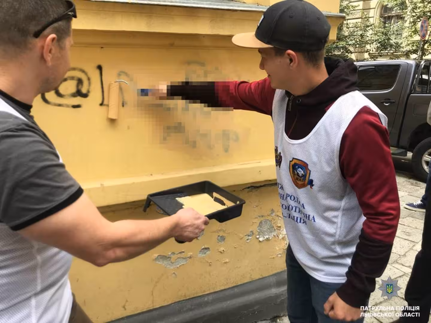 У Львові патрульні та громадськість зафарбували рекламу наркотиків на стінах будинків (фото)