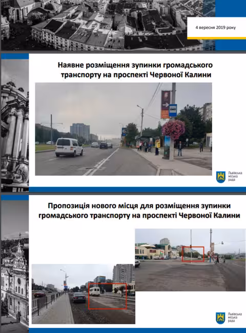 «Зупинка громадського транспорту на пр. Червоної Калини зараз у районі 100 м від ринку «Шувар». Ми працюємо над проектом облаштування бічних смуг на пр. Червоної Калини, відповідно, пропонуємо в рамках цього проекту зупинку облаштувати навпроти паркінгу. Ми це проговори з представниками ринку «Шувар». Зупинка мала б бути на цій допоміжній полосі. Ці допоміжні полоси хочемо зараз реконструювати, облаштувати там рух громадського транспорту. Але є сумніви, хочемо, щоб були застосовані рішення, які б комплексно вирішили проблему заторів. Тому ми це змоделюємо на спеціалізованому програмному забезпеченні ЛКП «Львівавтодор», якщо моделювання покаже, що це доцільно, ми це зробимо. На моделювання треба місяць. Ми плануємо цього року зробити проект, а наступного року виконати роботи», — розповів Олександр Одинець, в.о. директора департаменту житлового господарства та інфраструктури.