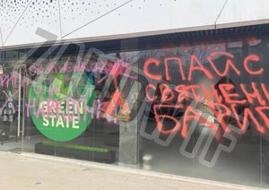 Сьогодні, на площі Петрушевича вже написами не обмежуються — тепер там вилітають вікна.
