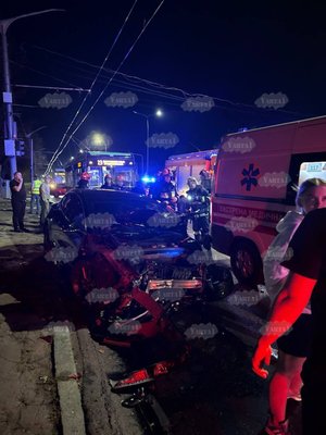 На місці автопригоди працює поліція та медики.