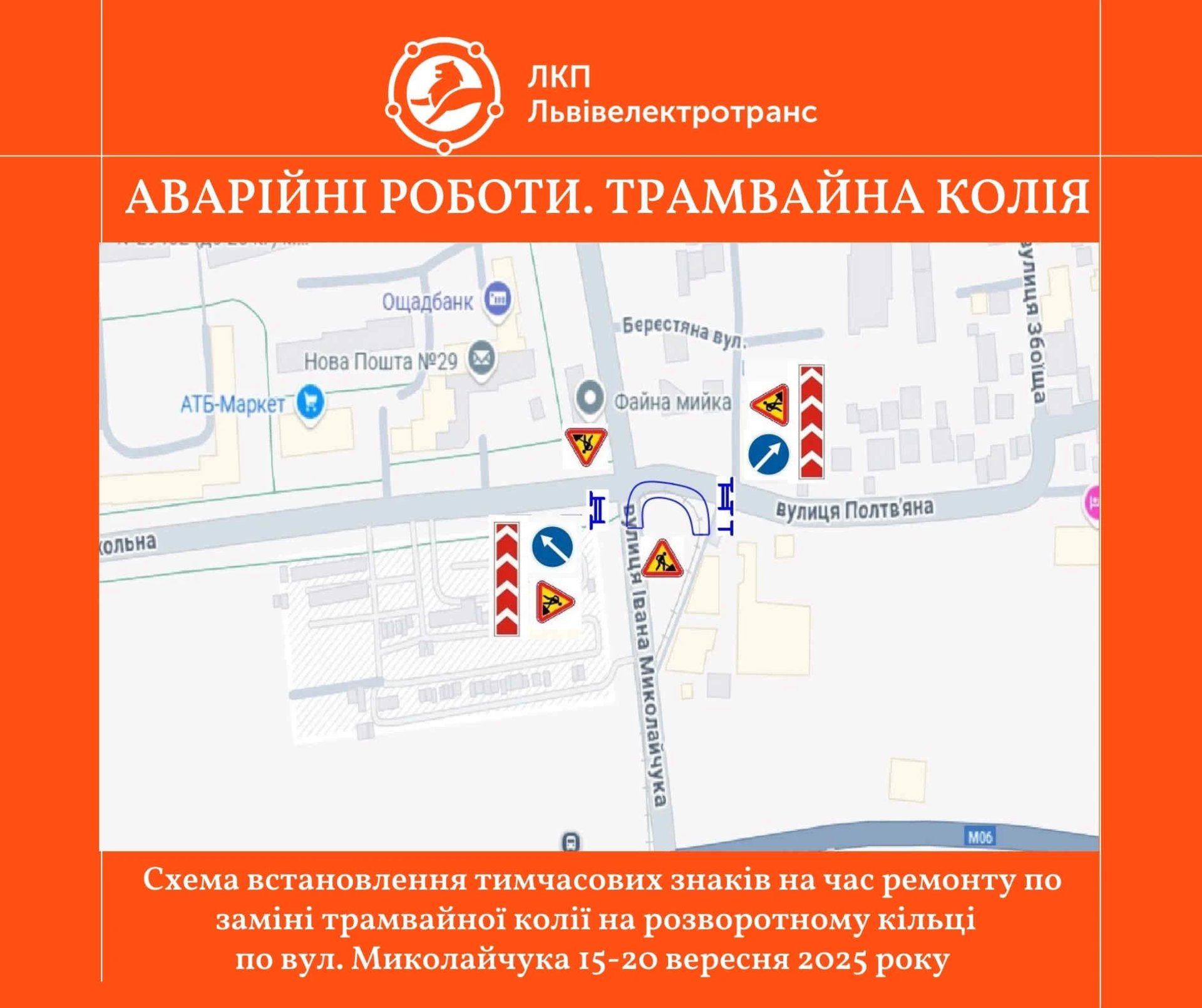Роботи стартують у понеділок, 15 вересня, а зміни в русі трамвая №6 набудуть чинності у вівторок, 16 вересня, з 12:00 і до кінця дня.
