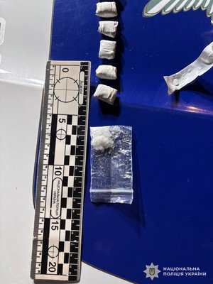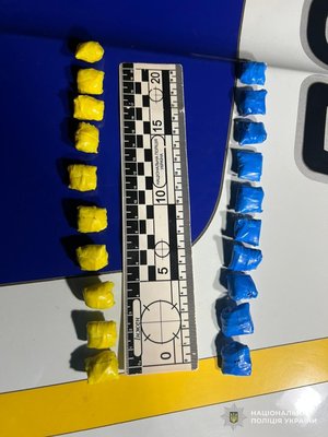 У затриманого було вилучено 33 «закладки» із вмістом речовини, схожої на наркотичний засіб канабіс, 20 «закладок» з речовиною, схожою на психотроп амфетамін та 10 – з речовиною, схожою на психотроп PVP.