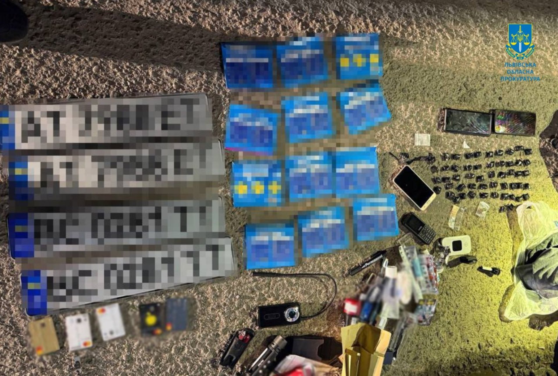 Правоохоронці затримали чоловіків безпосередньо після того, як вони залишили чергову закладку та завершили її фотофіксацію для подальшої передачі координат замовникам. Під час огляду місця затримання було вилучено близько 60 закладок з ймовірними психотропними та наркотичними речовинами у зіп-пакетах, а також інші докази їхньої протиправної діяльності.