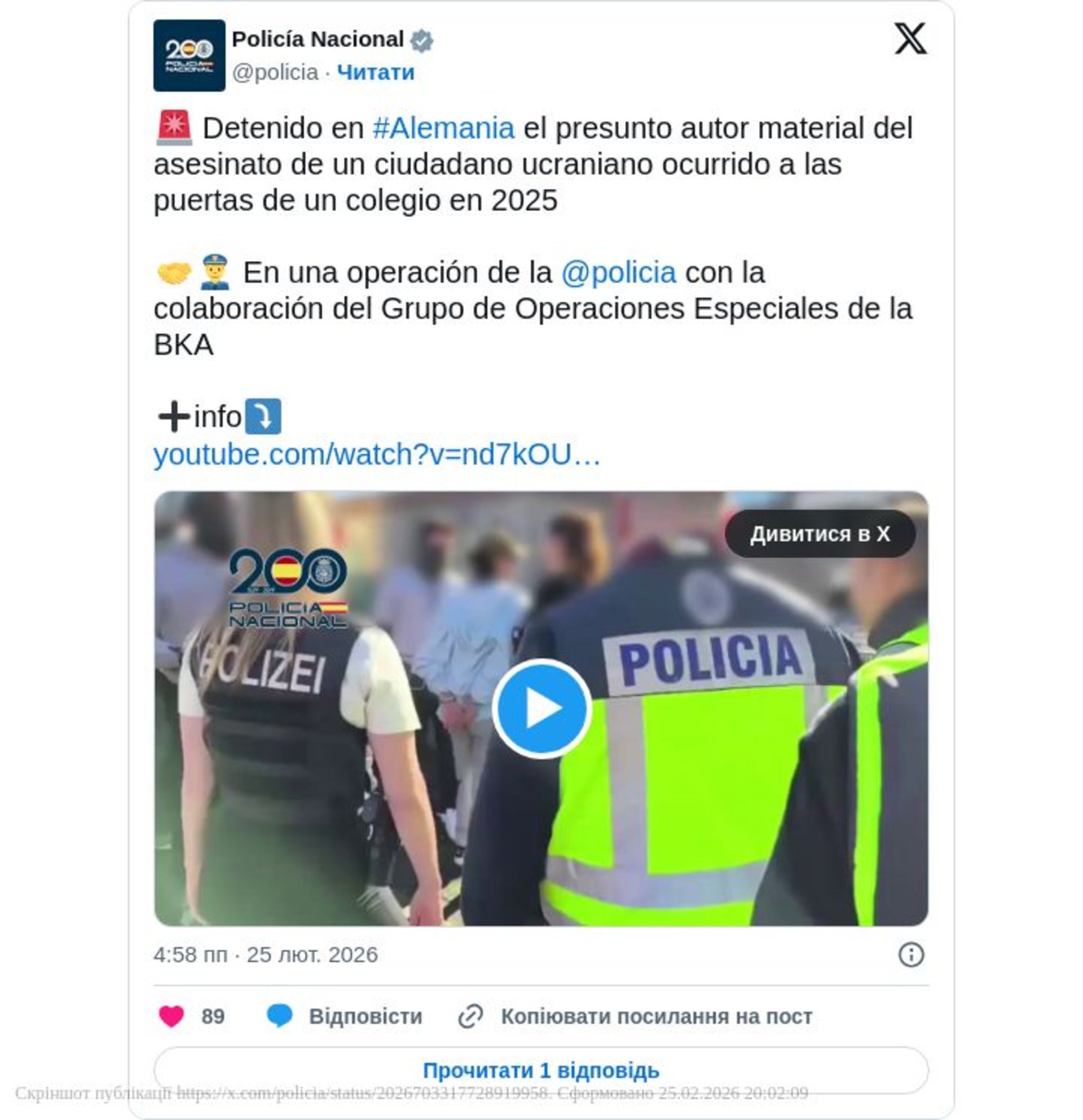 Підозрюваного затримали у місті Гайнсберг, у землі Північний Рейн-Вестфалія. Поліція Іспанії вважає, що затриманий стріляв в Андрія Портнова у день його вбивства 21 травня 2025 року.