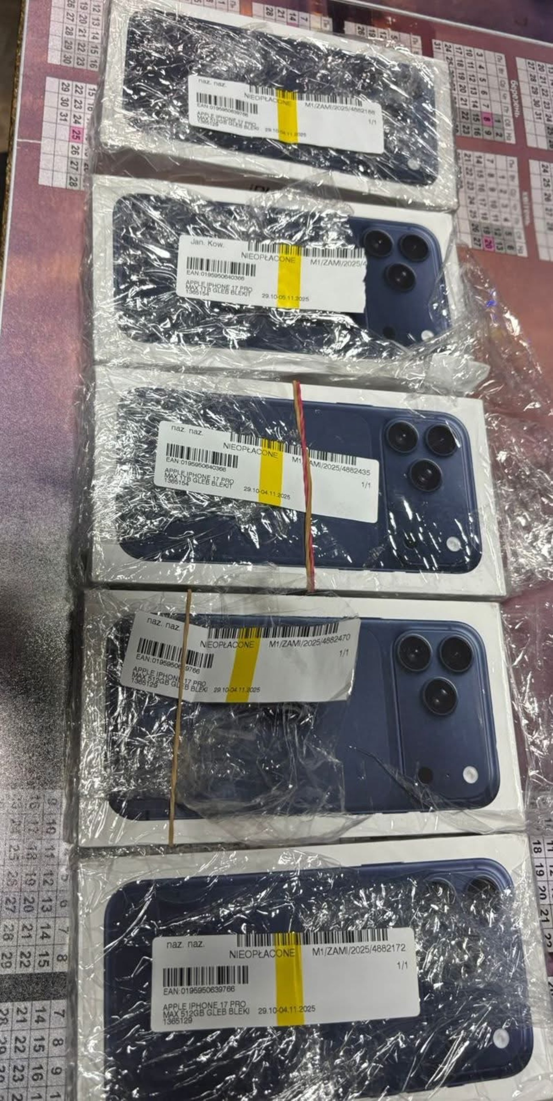 Під час огляду транспортного засобу серед особистих речей у багажному відділенні було виявлено 7 нових смартфонів iPhone 17 Pro Max.