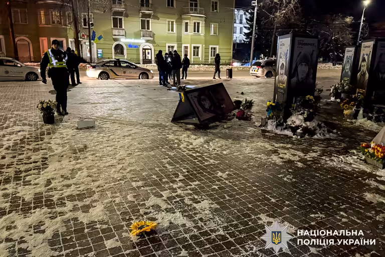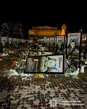 Вчора, 16 січня, близько 23 години надійшло повідомлення, що на Майдані Незалежності невідома жінка поводиться неадекватно та перекидає портери полеглих у війні захисників. Про це інформує Відділ комунікації поліції Рівненської області.
