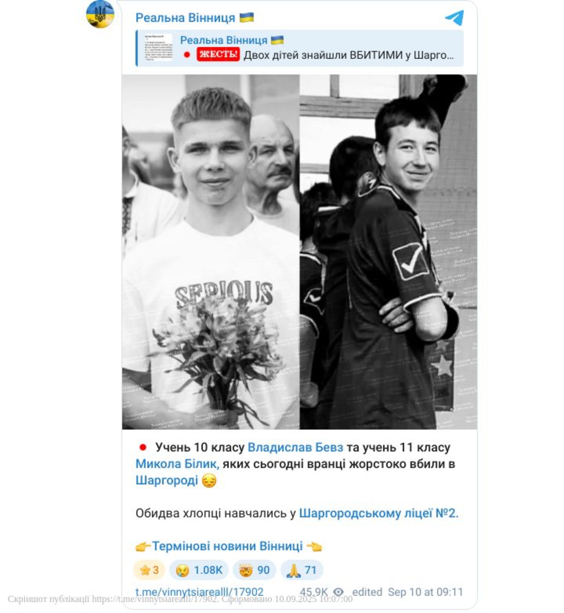 Читайте також: У Вінницькій області знайшли вбитими учнів 10 та 11 класу