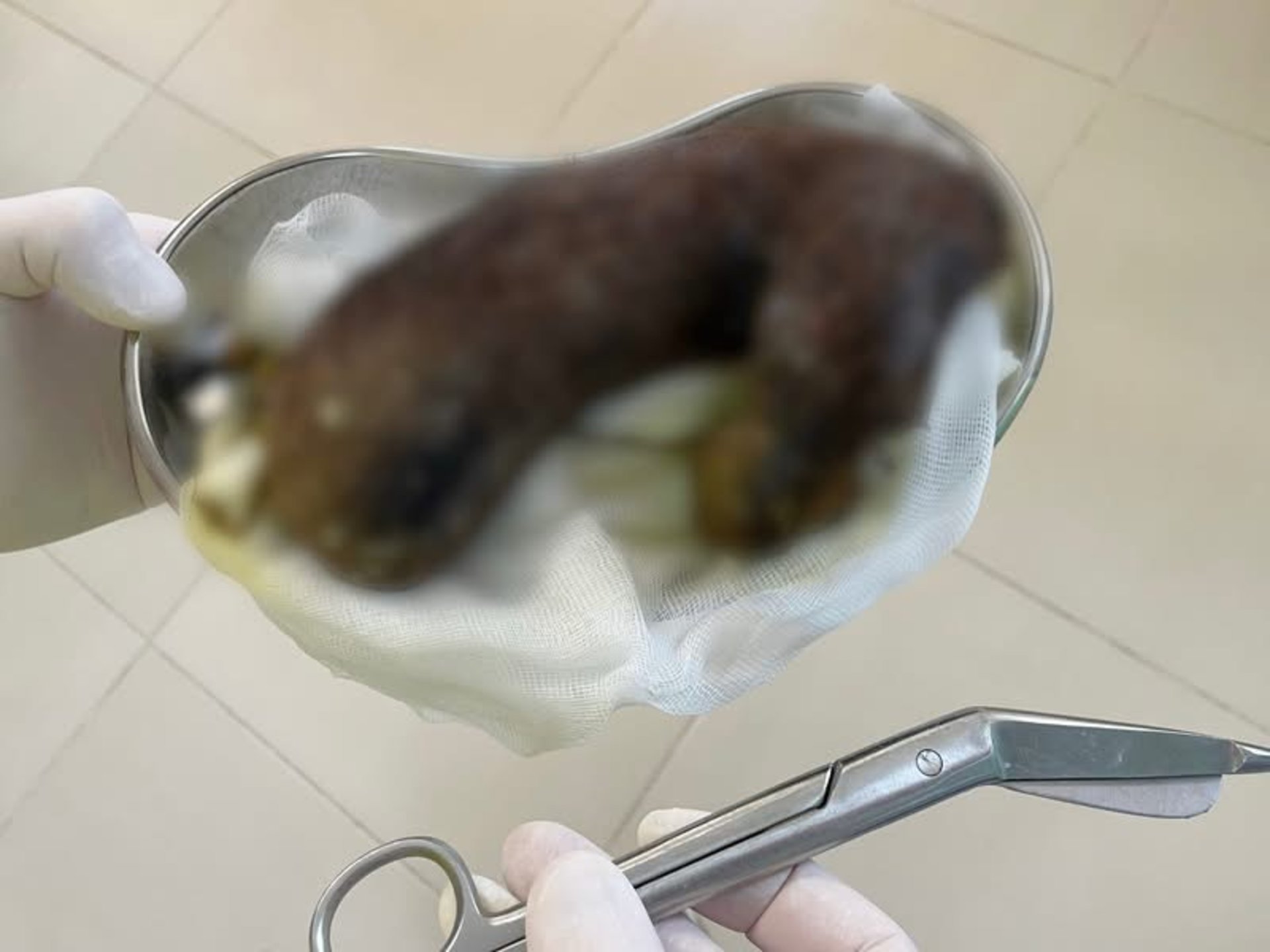 Операцію виконали хірурги Денис Коноплицький та Олег Милькус. Через великі розміри знахідки лікарям довелося проводити лапаротомію - розсічення шлунка. Вилучений 35-сантиметровий об'єкт повністю повторював форму органу та вже почав заходити у дванадцятипалу кишку. Такі випадки у медицині називають синдромом Рапунцель.