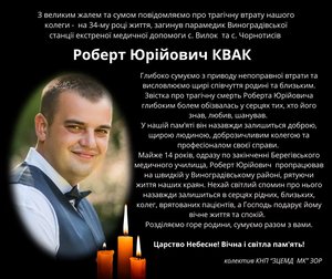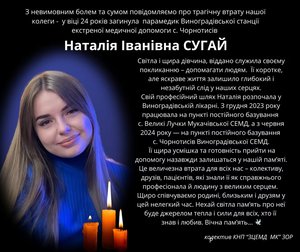 Двоє з чотирьох загиблих у ДТП на трасі Київ — Чоп на Львівщині парамедики Виноградівської станції екстреної меддопомоги. Про це повідомили Mukachevo.net у Закарпатському центрі екстреної меддопомоги, у ДТП загинули 33-річний парамедик Виноградівської станції екстреної меддопомоги Роберт Квак та 24-річна парамедик Наталія Сугай.