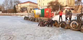 Жінки вийшли на лід, бо бачили сотні рибалок на льоду. Пофотографувавшись, вони пішли до берега — пірсу біля замку, де причалюють влітку екскурсійні кораблі.
