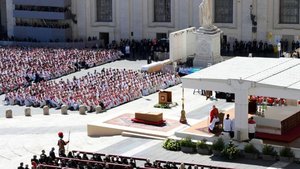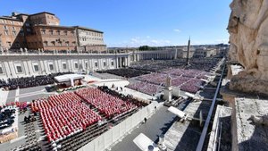 Слова кардинала Ре про зусилля та заклики Папи до миру у всьому світі викликали широкі аплодисменти натовпу присутніх.