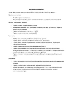 Документ містить пропозиції щодо припинення вогню, відмова від НАТО та часткове визнання окупації
