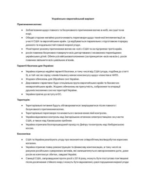 Українські та європейські офіційні особи на переговорах у Лондоні передали американській стороні свої умови мирного врегулювання війни Росії проти України. Повний текст документа опублікувало агентство Reuters.
