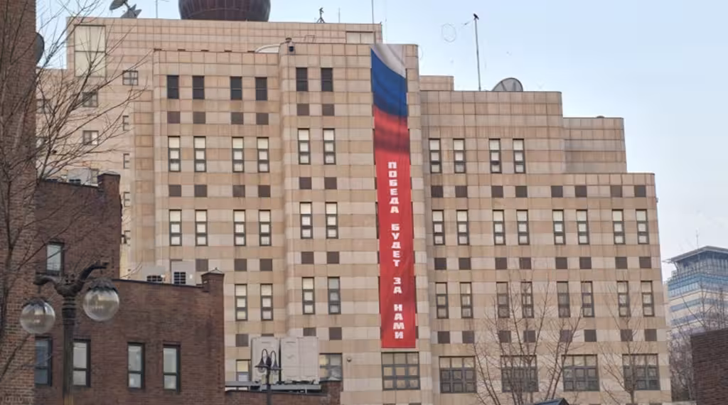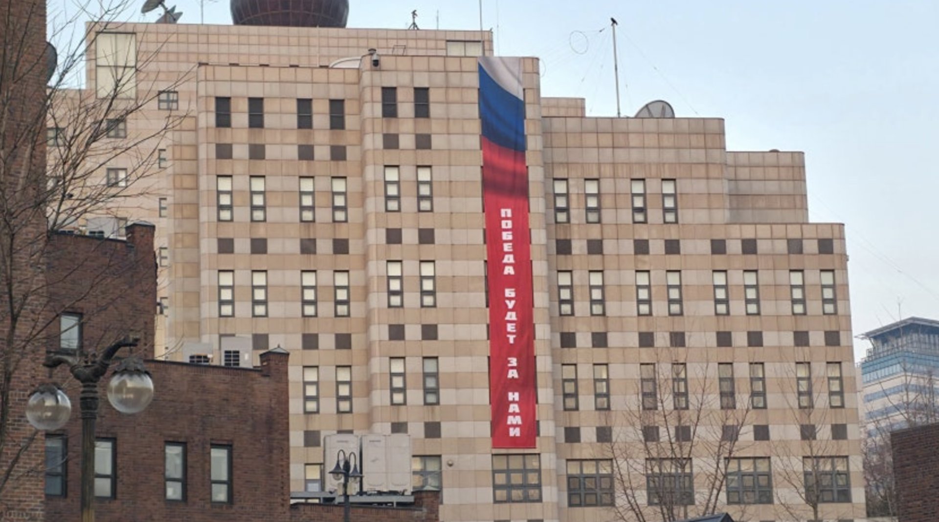 За кілька днів до річниці повномасштабного вторгнення в Україну російське посольство у столиці Південної Кореї Сеулі вивісило 12-метровий банер із написом «Перемога буде за нами». Про це пише видання Chosun.